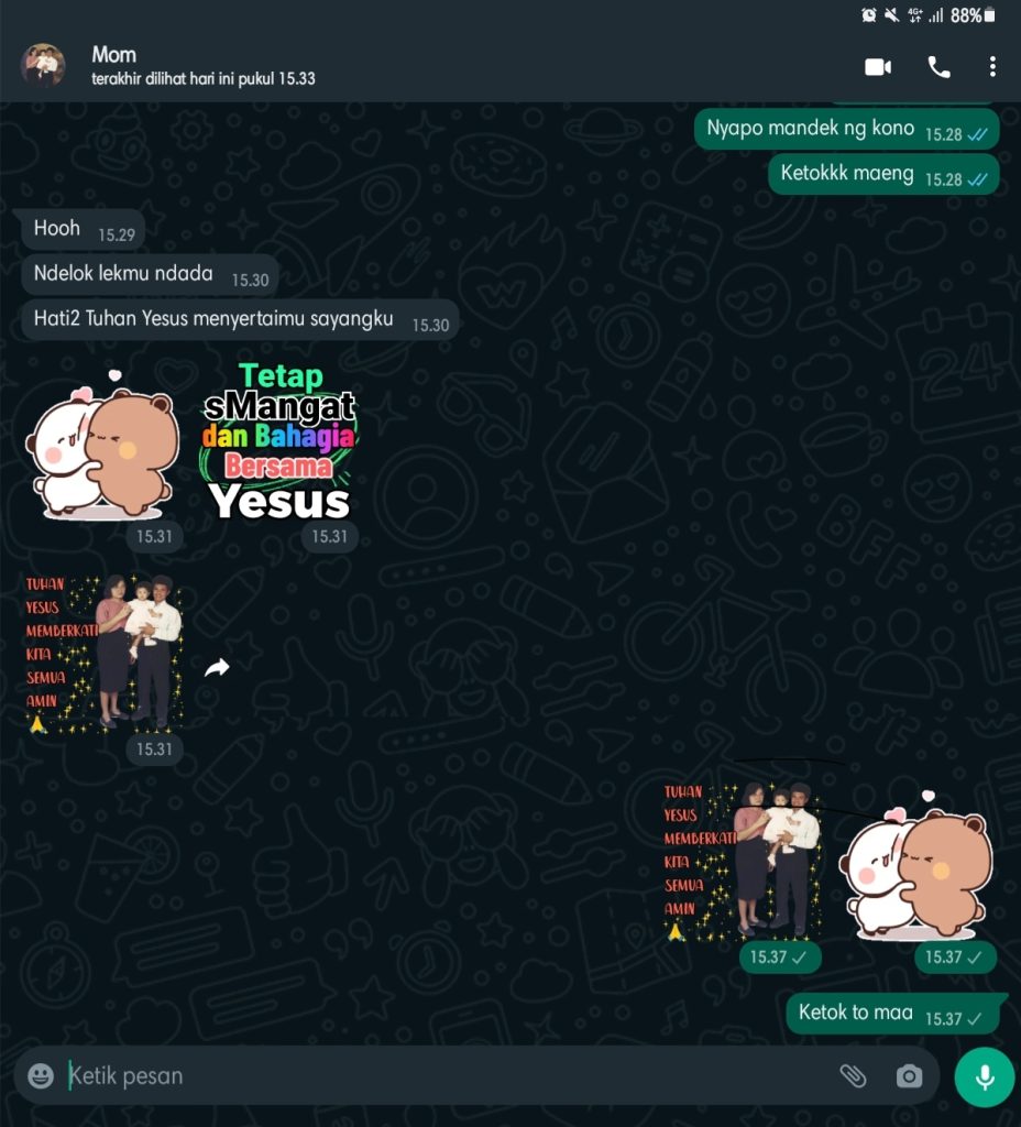 Aku langsung lari ke ke kereta, rupanya aku tidak sempat hug & kiss mama, pantas ada yang kurang 🙂 . Setiap berpamitan di stasiun itu adalah ritual rutinku, meskipun setiap bulan aku pulang, ritual itu is a must. Setelah melihat mamaku melambai aku sadar, Physical Touch memang love language kami.