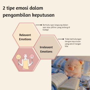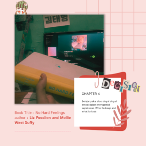 Apa yang kalian pikirkan soal melibatkan perasaan dan emosi dalam pengambilan keputusan? Kita cenderung menganggap keputusan yang diambil dengan perasaan tidak selugas keputusan yang penuh analisis rasional. Dalam buku “No Hard Feelings” yang ditulis 2 bestie a.k.a Liz & Mollie kita bisa belajar untuk peka dengan sinyal yang dibawa oleh perasaan yang sedang kita rasa. Tentu saja tidak semua perasaan kita valid untuk didengarkan dalam pengambilan keputusan. Setidaknya setelah membaca Chapter 4, “Decision Making” dalam buku ini kita bisa mendapat gambaran soal perasaan mana yang relevan dengan posisi kita dalam mengambil keputusan tertentu, dan perasaan mana yang tidak relevan. Liz dan Mollie memecahnya sebagai “What to keep and what to toss”.