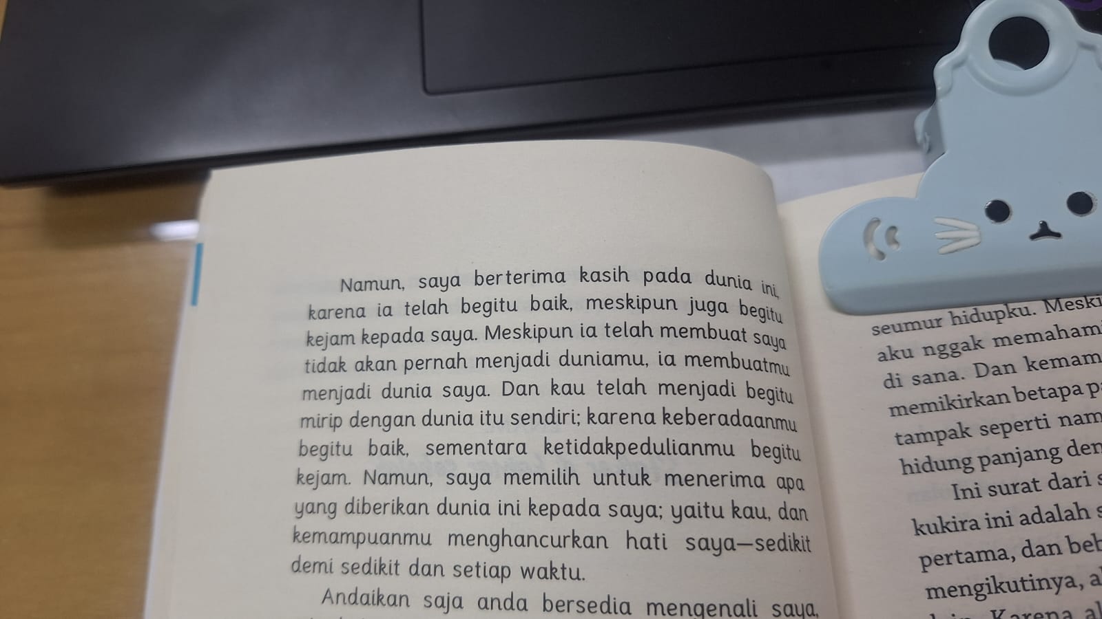 begitulah penggalan suratnya. 1 paragraf yang sudah kufoto ini mengingatkanku padamu. Semesta membuatmu menjadi duniaku, meskipun aku tidak akan pernah jadi duniamu. Aku menahan diri untuk tidak mengusik kenyamanan tanpa kehadiranku. Jadi aku menulis disini. Ah, notifikasi favoritku sudah pergi, dia adalah sesuatu yang ingin kuberi tahu semua hal penting dan tidak penting yang kutemui setiap harinya. Sudah hilang.