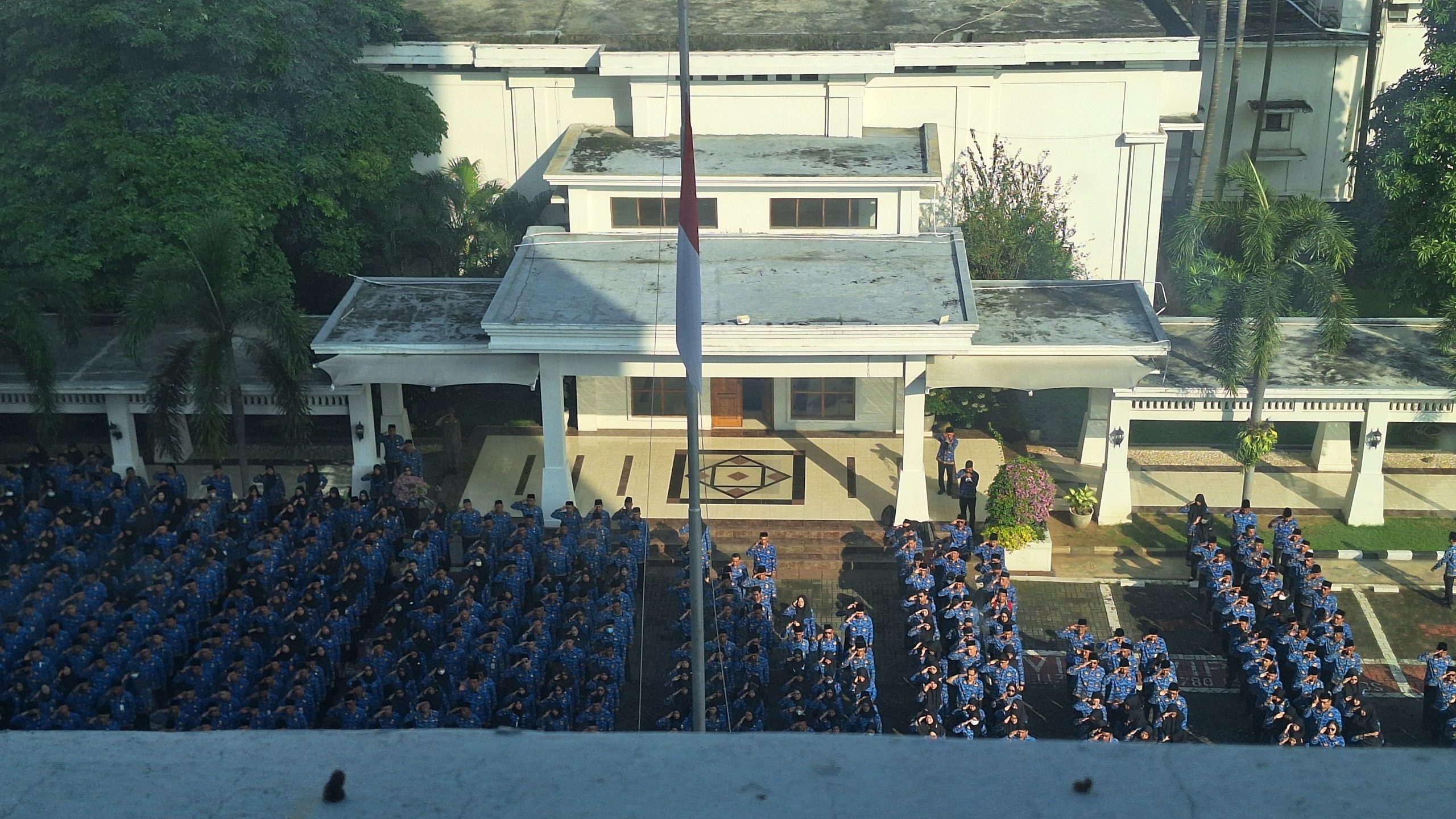 Day 1 kita disuru dateng jam 7 sama bag. kepegawaian biro kesra, dan menunggu dulu di pojok literasi biro kesra. Biro kesra ada di Lt. 5, dari sini kami bisa melihat bapak,ibu,mas, dan mbak pns lagi ikut upacara peringatan Hari Lahir Pancasila. Hari Pancasila kan 1 juni tuh, tapi upacara di setda nya mundur ke tgl 2 (sekalian hari senin kali ya). Wah,, udah lama bgt ga ikut upacara. Upacara terakhirku ya upacara penyambutan mahasiswa baru di UB, 2016 haha … hampir 10 tahun yang lalu. Anw view dari pojok literasi biro kesra adalah Tugu Pahlawan, enak sih kerja disini (I mean di pojok literasinya) .